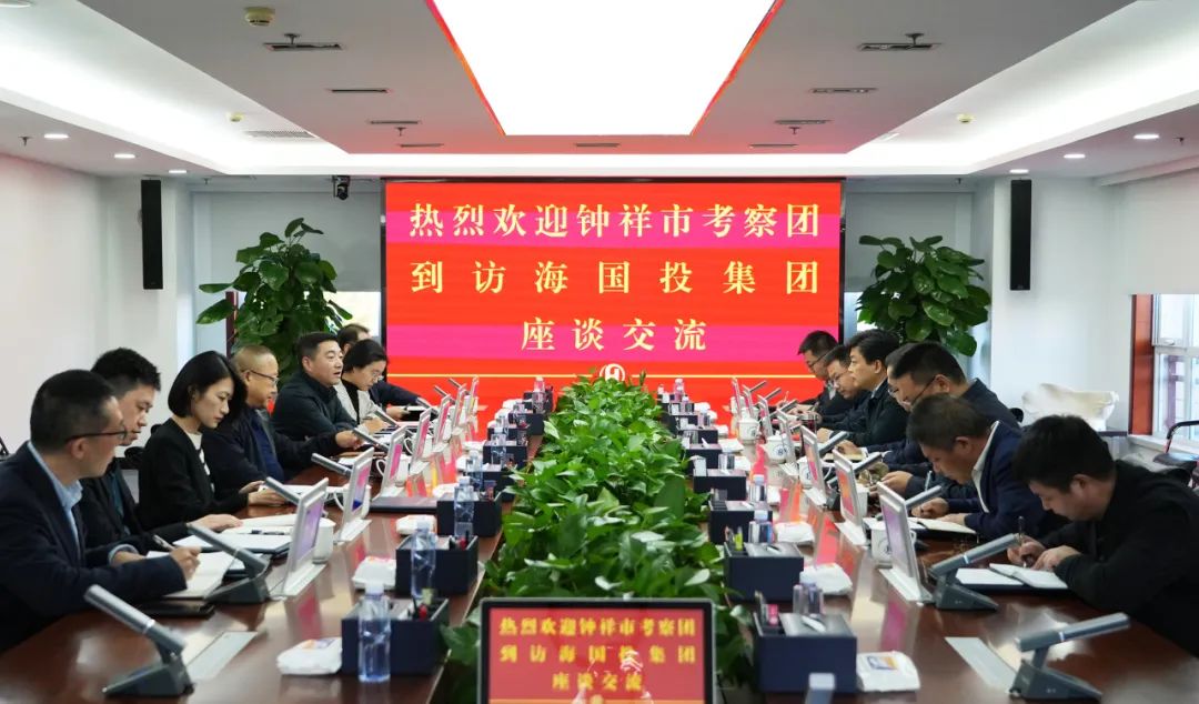 2023年11月6日下午,鐘祥市市委書記周軍,鐘祥市副市長劉濤,鐘祥市胡集經(jīng)濟技術開發(fā)區(qū)主任、胡集鎮(zhèn)黨委書記胡濤等一行到訪海國投集團座談交流,集團黨委書記、董事長張國斌,黨委副書記、總經(jīng)理于志偉,副總經(jīng)理肖琳娜,相關業(yè)務部門及下屬企業(yè)負責人參加座談。