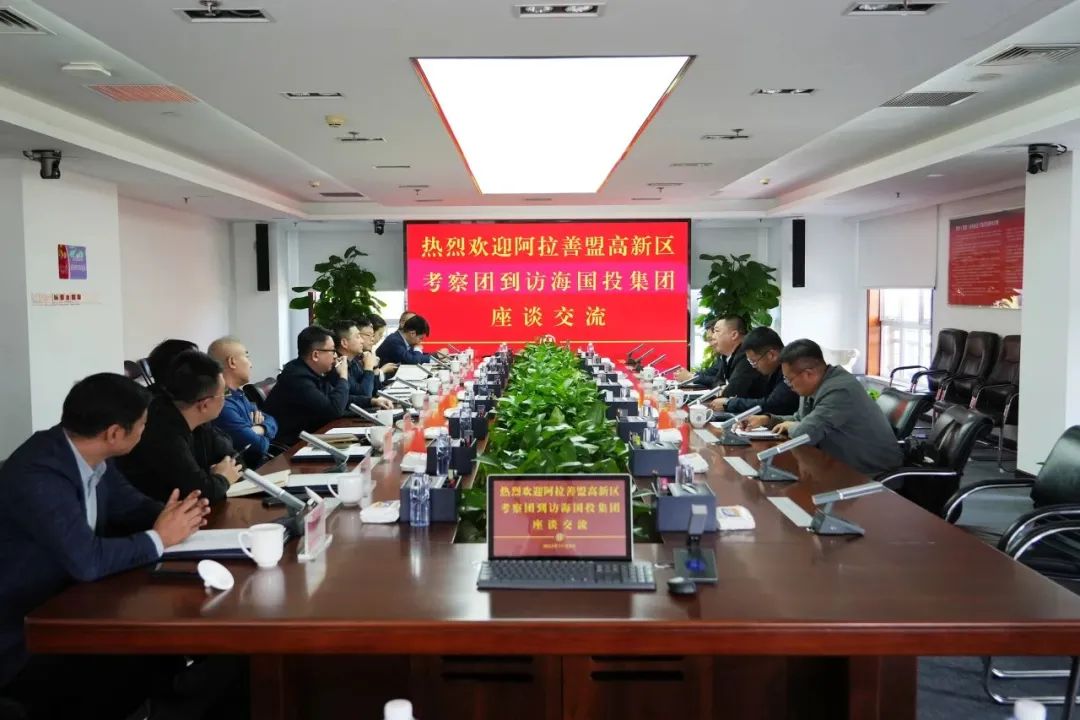 2023年11月3日下午,阿拉善盟高新技術(shù)產(chǎn)業(yè)開發(fā)區(qū)黨工委書記柳仙德,經(jīng)濟發(fā)展局局長胡開明,投資促進(jìn)局副局長任春暉到訪海國投集團,就雙方項目推進(jìn)和深化合作進(jìn)行座談交流。集團黨委副書記、總經(jīng)理于志偉,總經(jīng)濟師陳鷗,總經(jīng)理助理王騰,相關(guān)業(yè)務(wù)部門及下屬企業(yè)負(fù)責(zé)人參加座談。